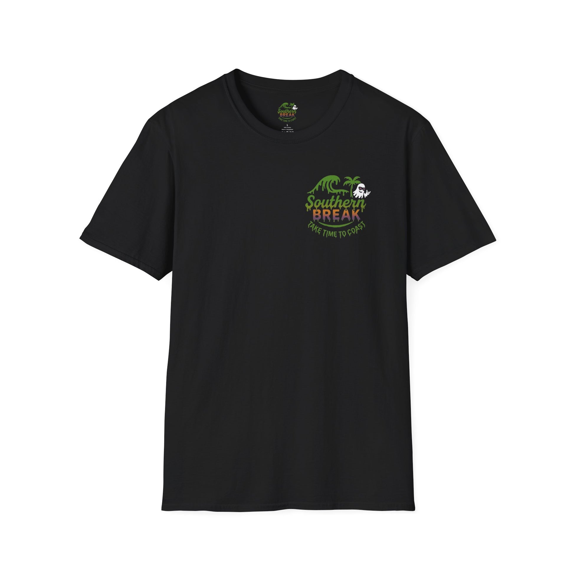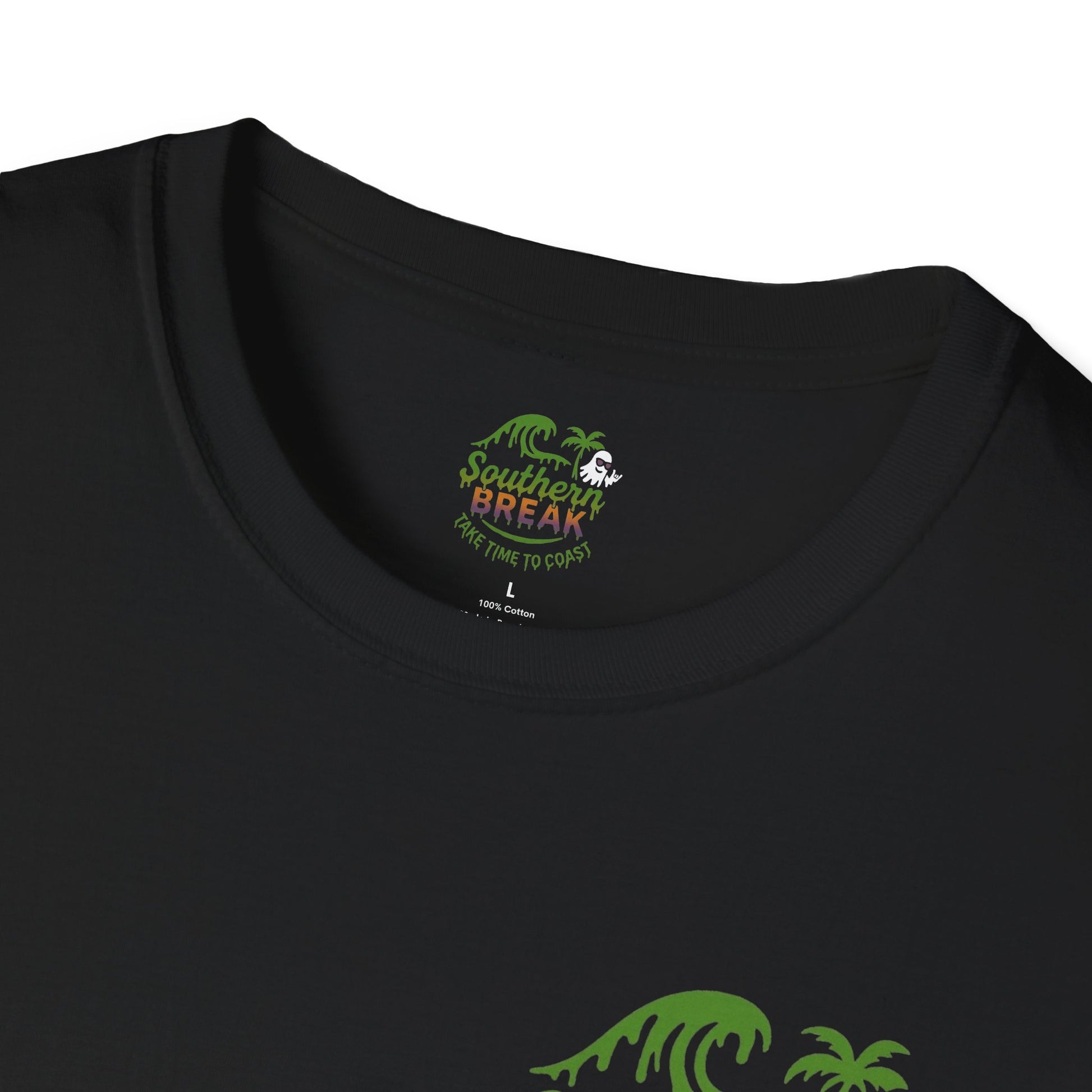 Get spooky and coastal at the same time with the Ghosted & Coasted Tee. Featuring a ghost rocking shades, throwing a shaka, and carrying a surfboard, this playful design blends Halloween vibes with the Southern Break lifestyle. Finished with bold orange-to-purple gradient text and green slime drips, it’s the perfect fall statement piece.