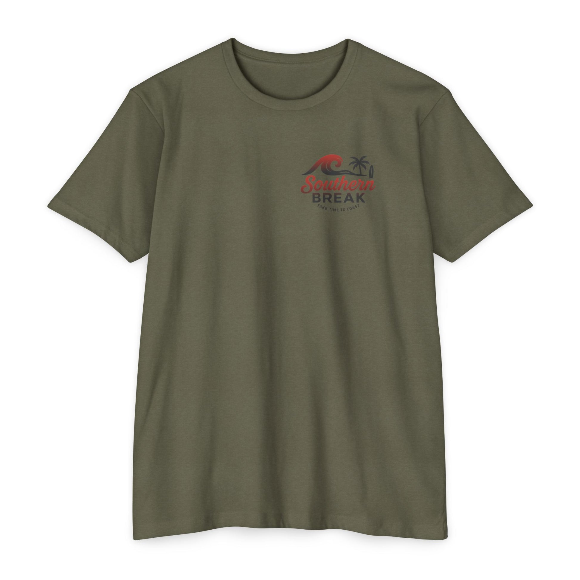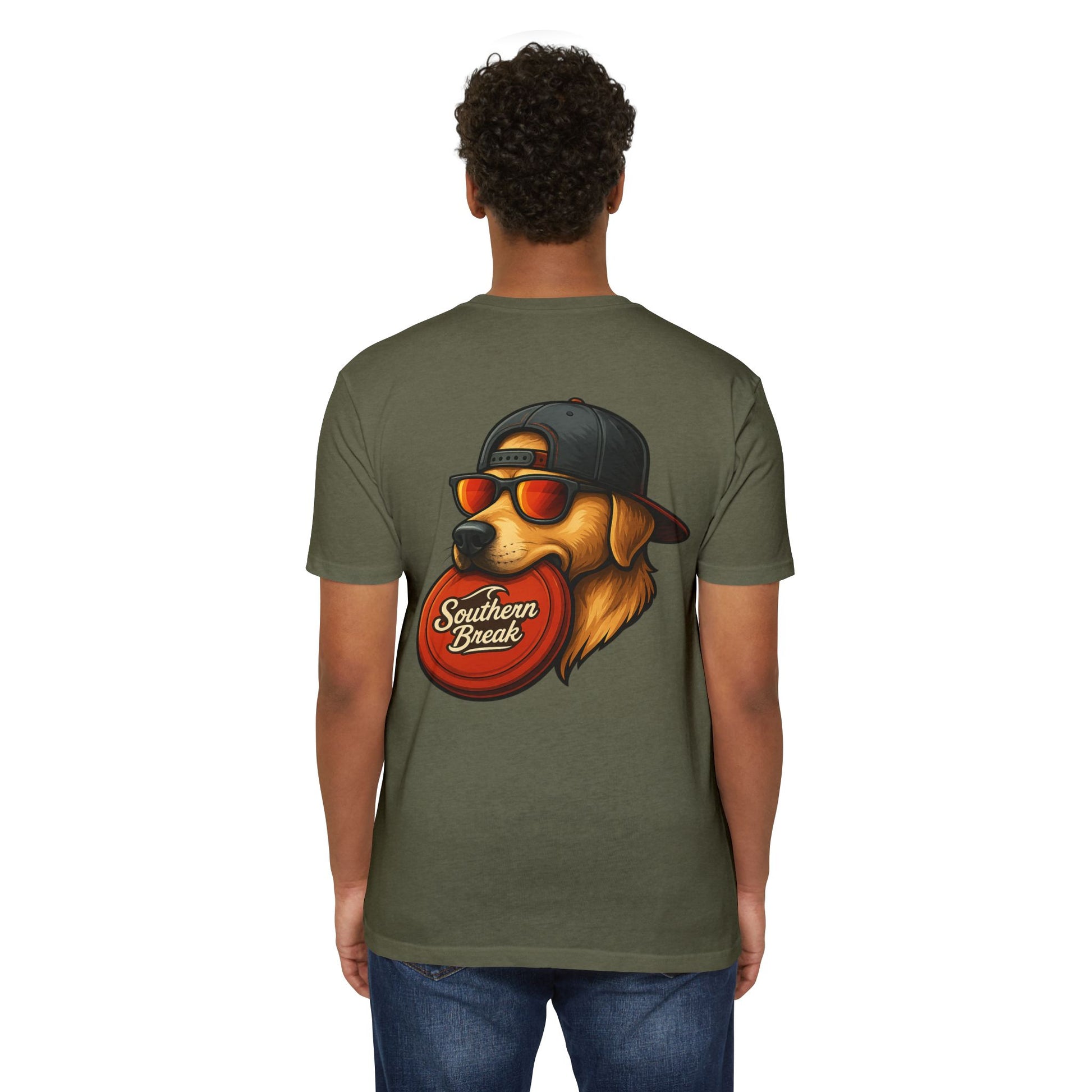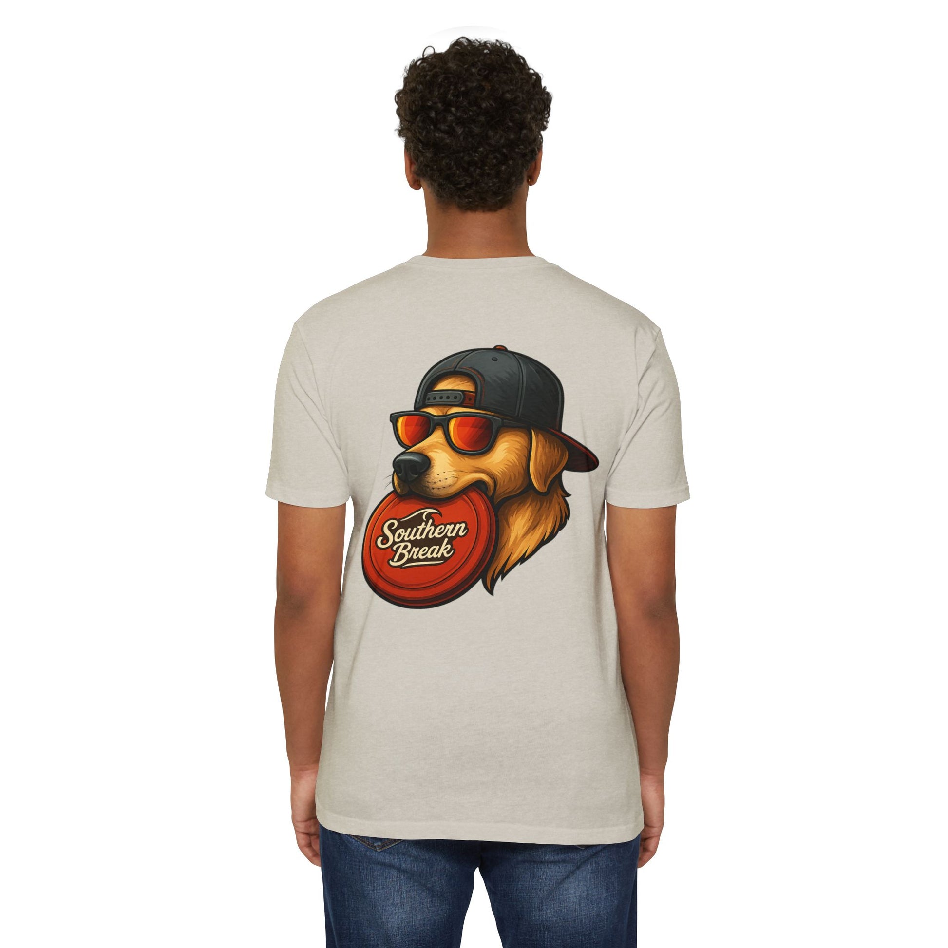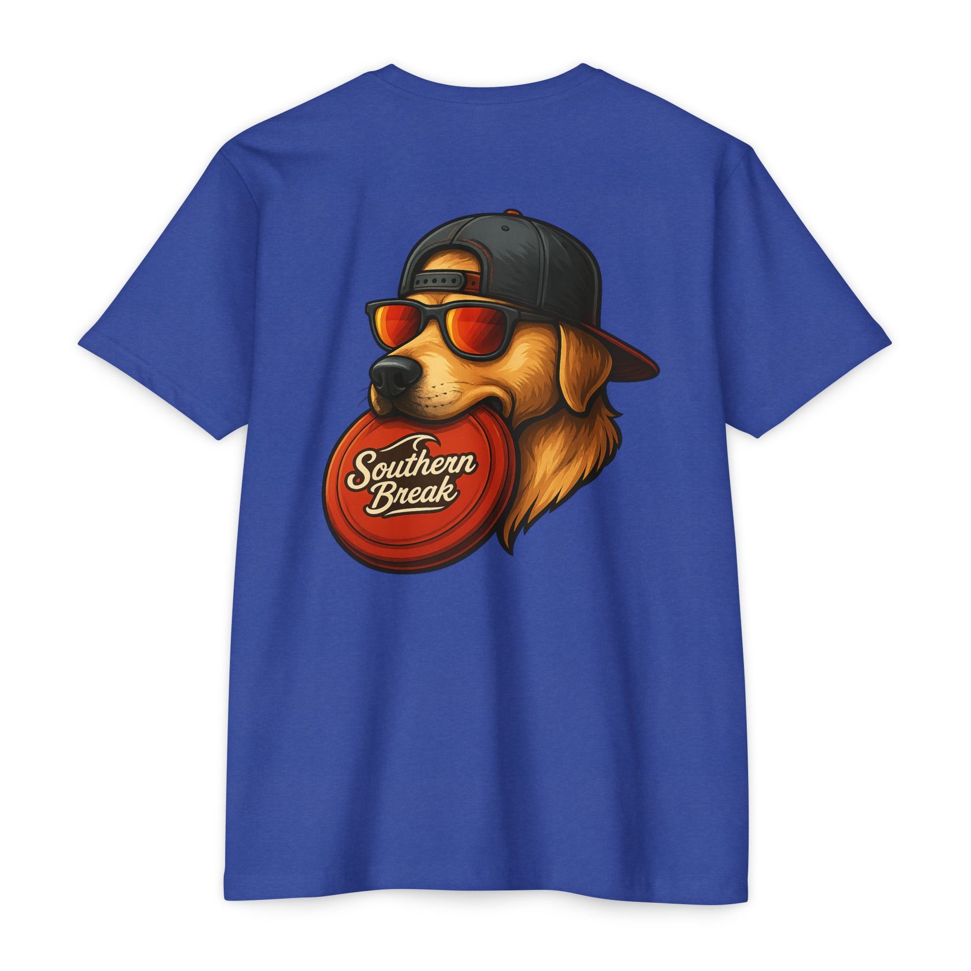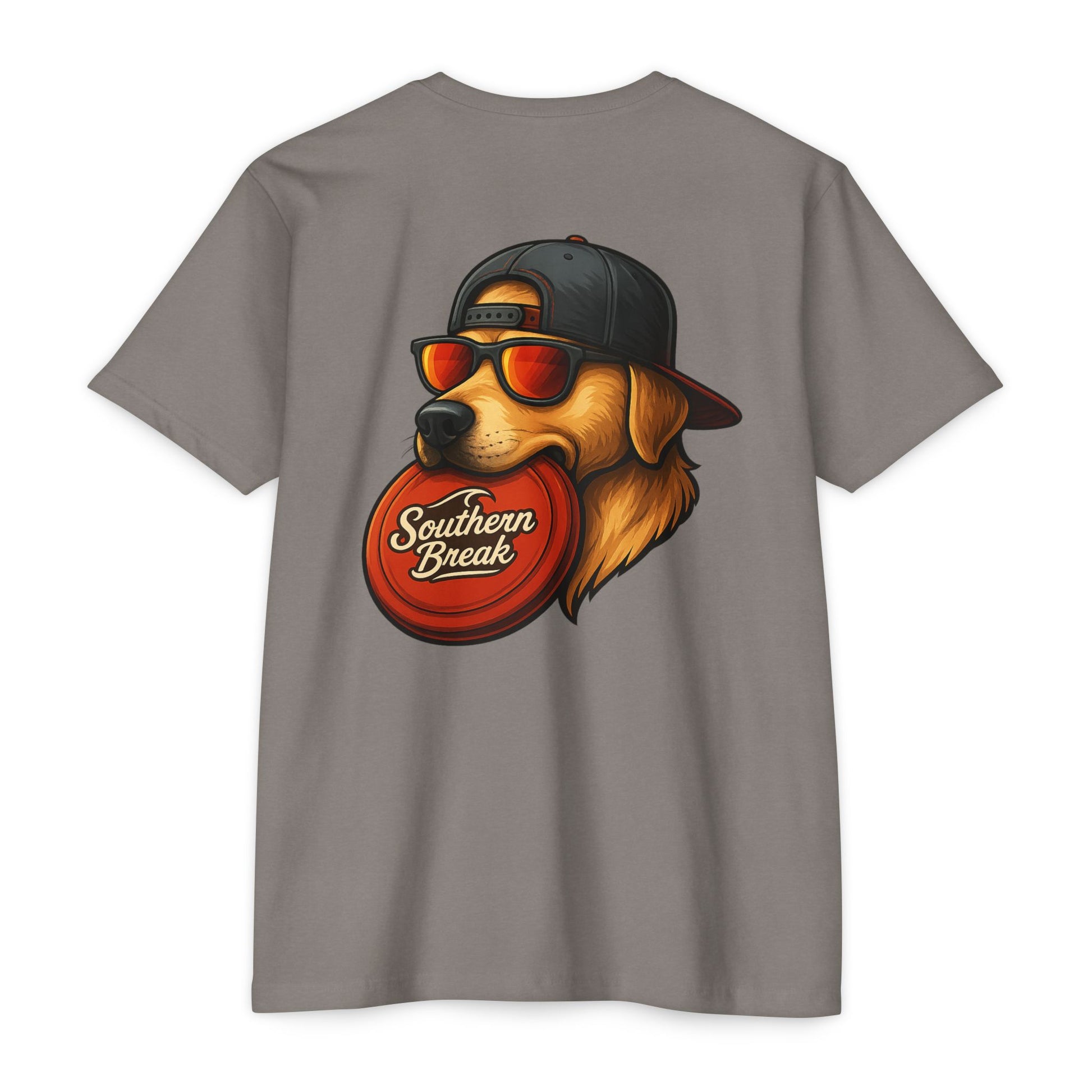 Take Time to Coast meets man’s best friend. The Southern Break Costal Dog Tee brings bold coastal energy featuring a close-up graphic of our pup rocking a backwards snapback and gripping a frisbee stamped with the Southern Break logo, this shirt blends beach life with streetwear.