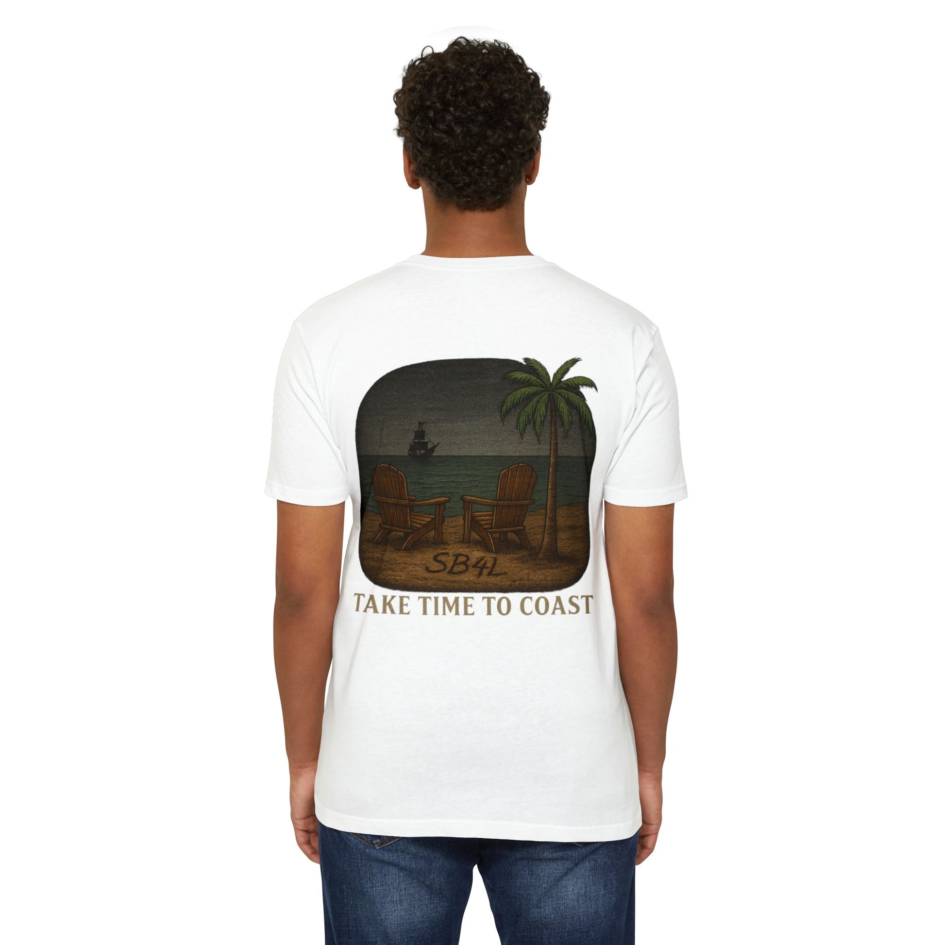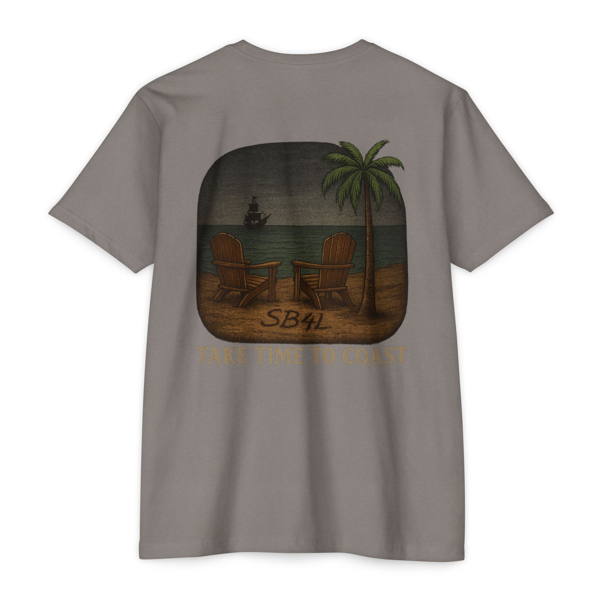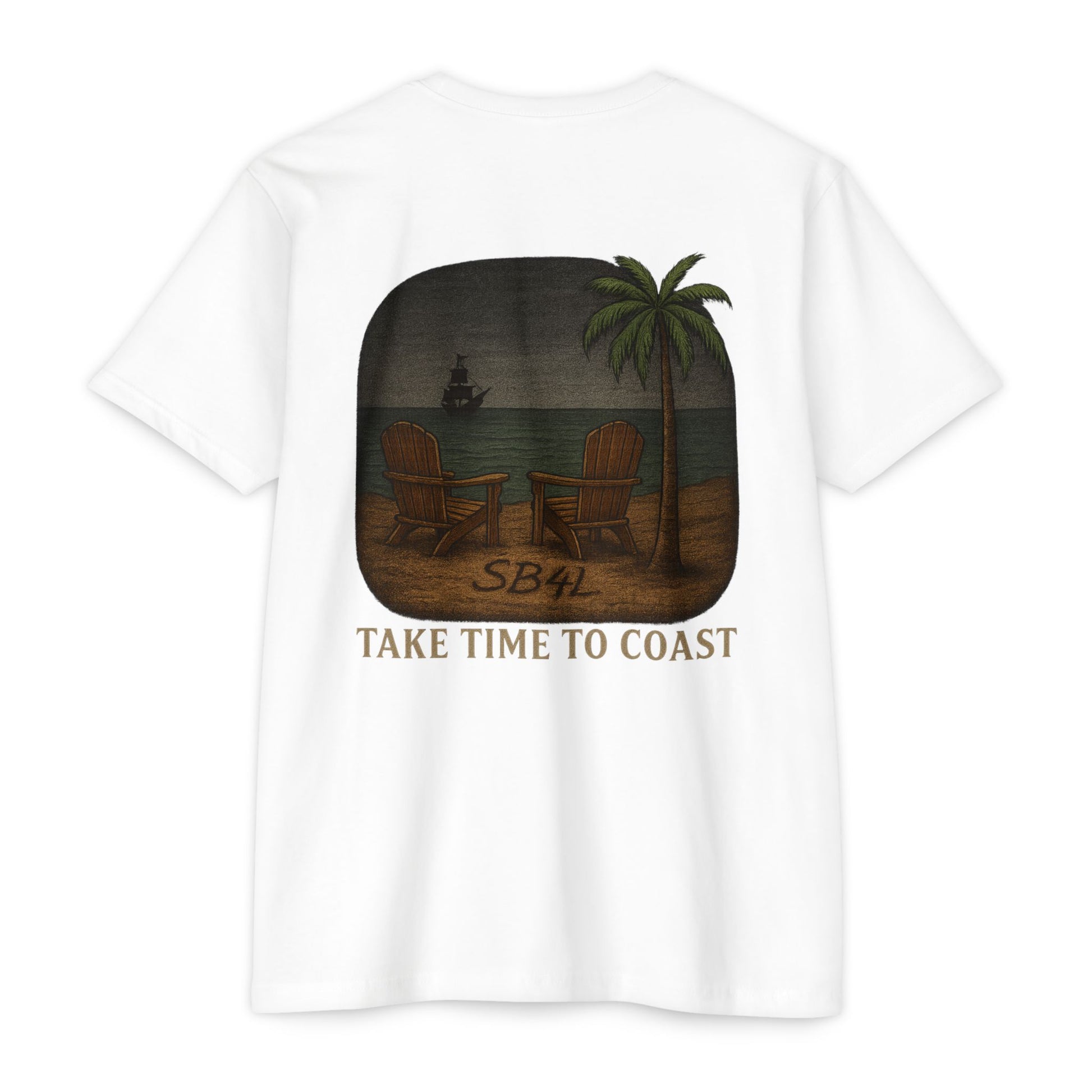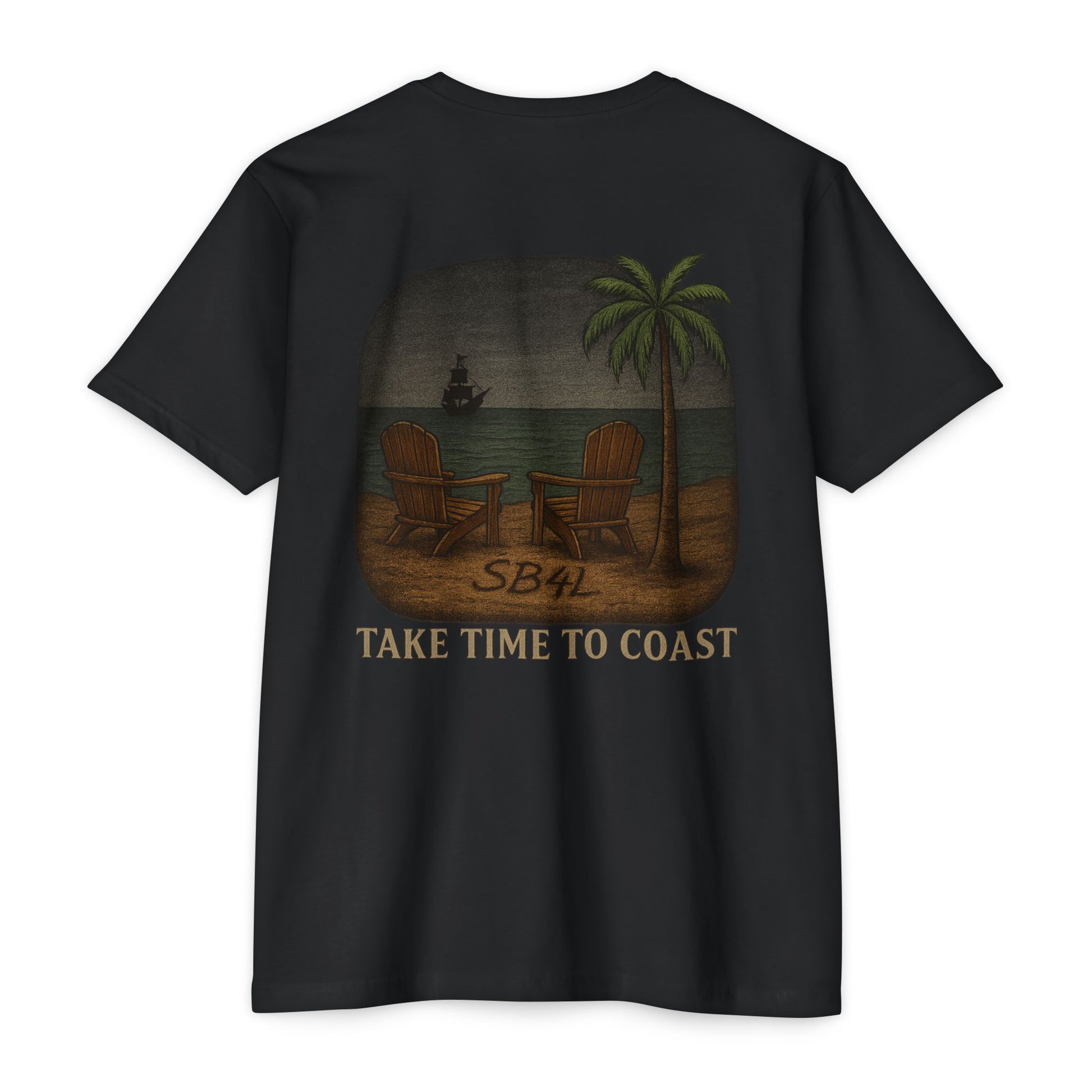 The SB4L Tee from our Signature Series puts a fresh spin on creator Nathan McNeely’s actual tattoo, with a subtle nod to one of his favorite series. Featuring an antique compass chest logo and a back graphic etched with SB4L in the sand, this collector’s shirt is finished with our iconic slogan — Take Time To Coast.