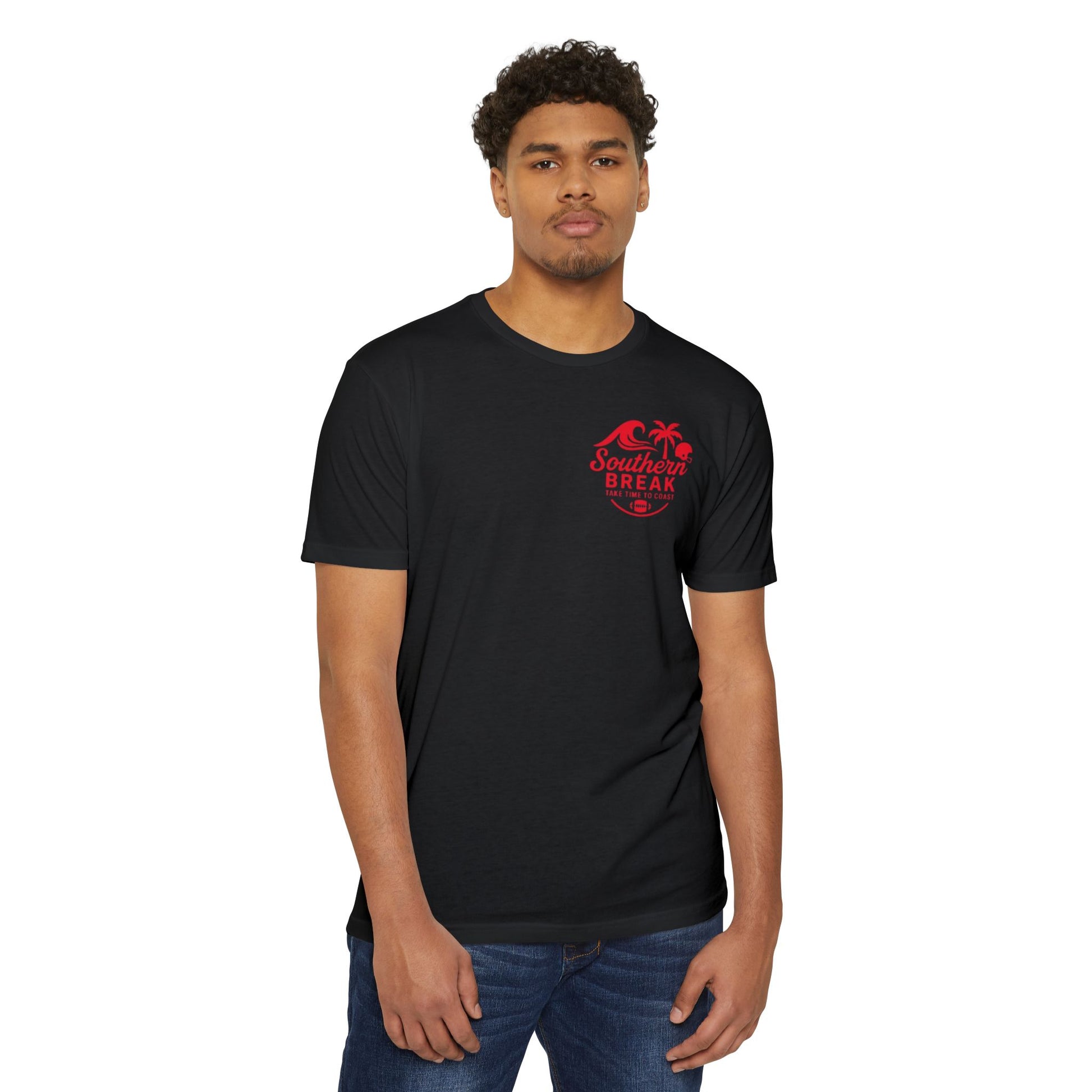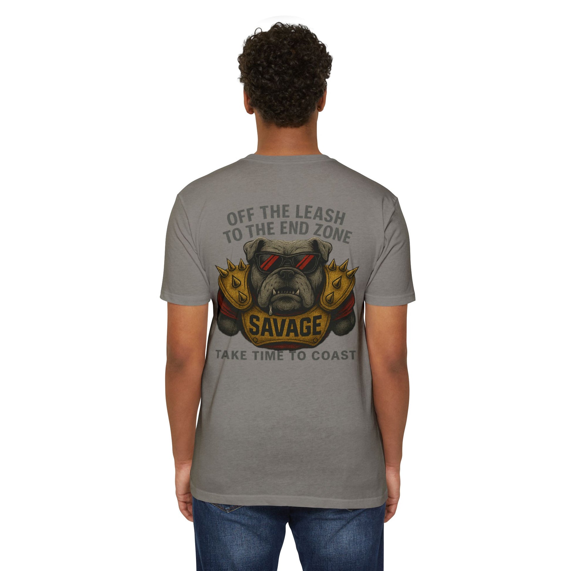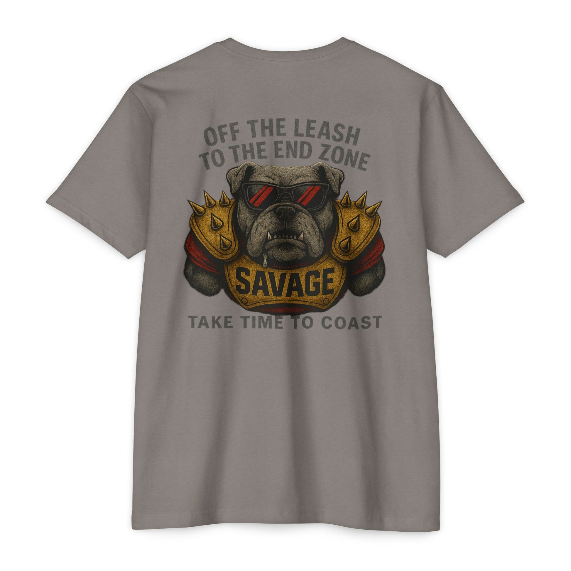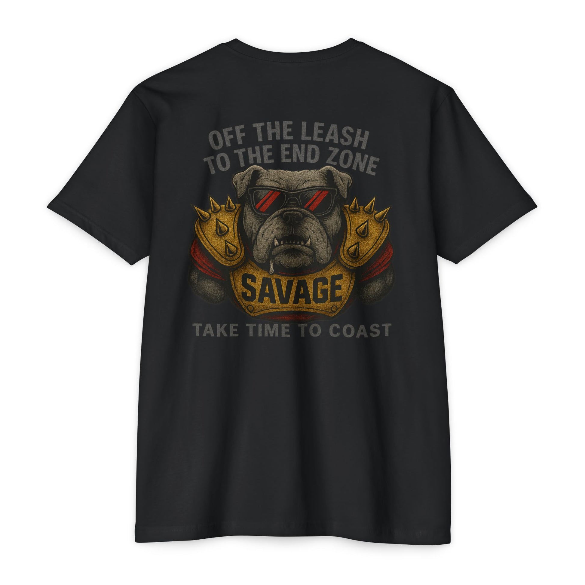 Break the chain and unleash the Dog. The Southern Break Aggressive Series Off The Leash tee brings the bite with a snarling dog chest-up in golden spiked pads stamped with “SAVAGE.” Drool flying, teeth bared, and red-and-black coastal shades lock in the mean-mug energy that fans know and love. Topped with “Off the Leash to the End Zone” and finished with our signature “Take Time to Coast,” this shirt combines pure gridiron grit with Southern Break’s coastal lifestyle.