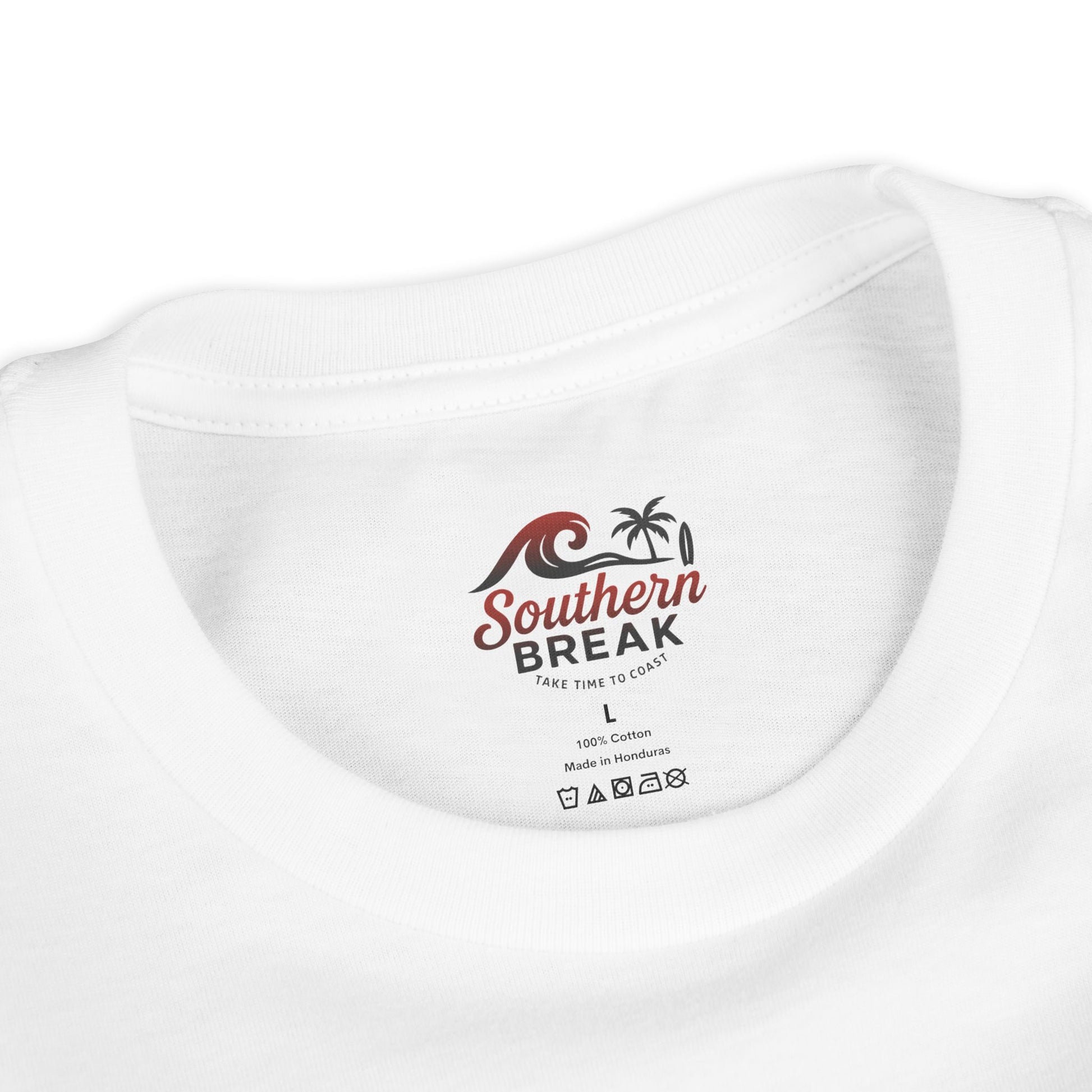 Take Time to Coast meets man’s best friend. The Southern Break Costal Dog Tee brings bold coastal energy featuring a close-up graphic of our pup rocking a backwards snapback and gripping a frisbee stamped with the Southern Break logo, this shirt blends beach life with streetwear.
